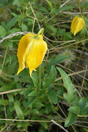 | - Clematis tangutica / Gold-Waldrebe, Mongolische Waldrebe (Ranunculaceae, Hahnenfußgew.): HK:Mongolei, China |